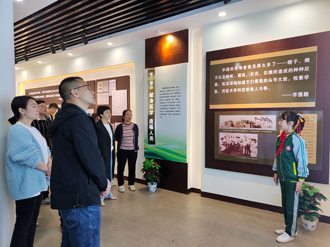 隨后,黨員們跟隨著小小解說員的腳步,參觀了“婁底市愛國主義教育基地”、“湖南省華僑文化交流基地”李振翩愛國主義事跡館。李振翩先生是萬寶鎮(zhèn)石埠村人,是世界著名醫(yī)學(xué)家、病毒學(xué)家、社會活動家,是歷史上一位傳奇人物,一名偉大的科學(xué)家,曾與毛澤東在湖南從事過學(xué)生運動,是中國共產(chǎn)黨的好朋友,是中美建交“密使”。他發(fā)明研制的小兒麻痹癥疫苗為全人類作出了杰出貢獻。通過孩子們的生動講解,大家對李振翩先生奮斗一生所取得的光輝成就和愛國主義事跡有了更深刻的了解,對振翩先生深感敬佩,同時對振翩小學(xué)的辦學(xué)理念表示了充分的認可。
