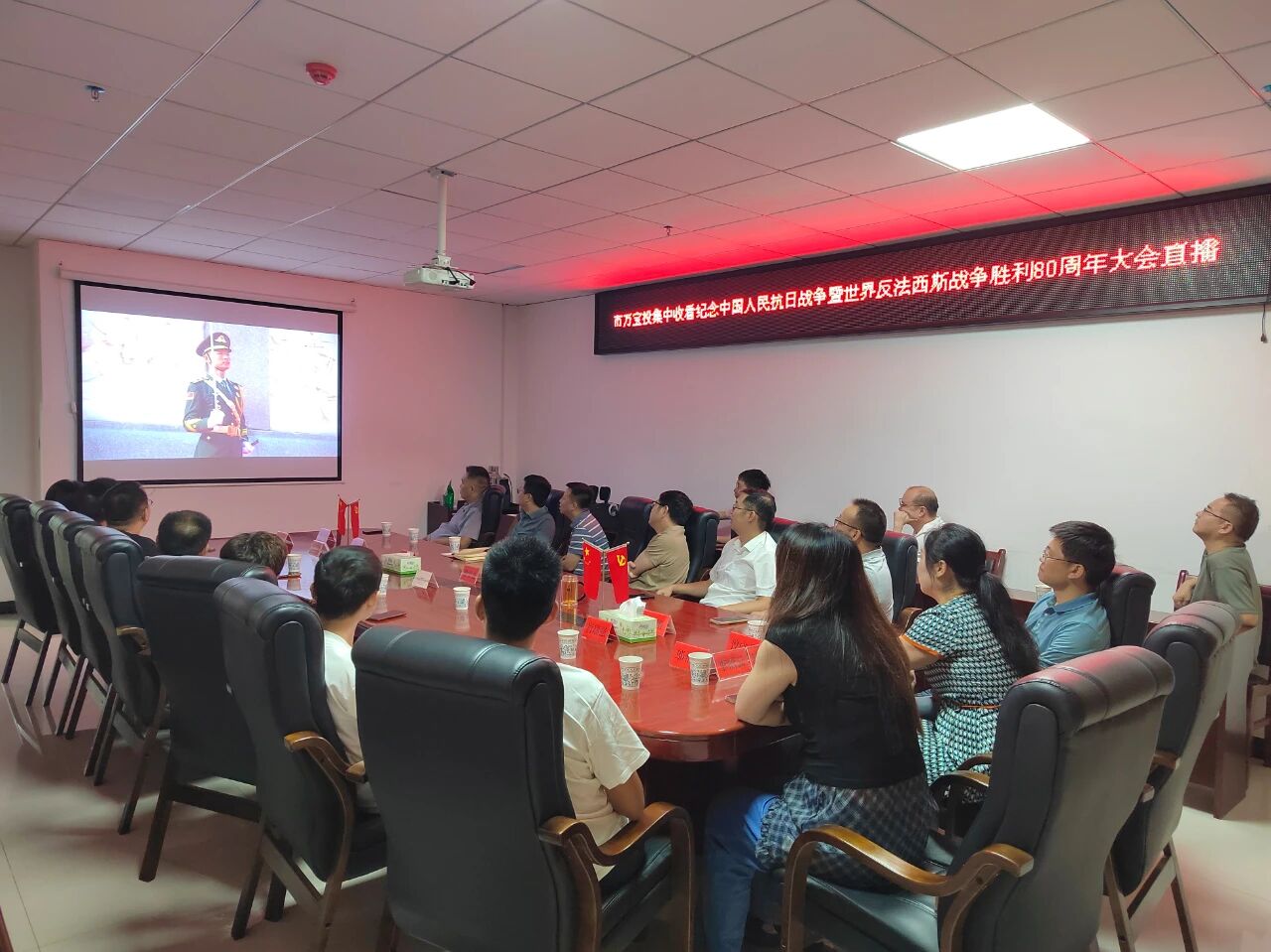 為進(jìn)一步引導(dǎo)廣大干部職工銘記歷史、緬懷先烈,弘揚(yáng)偉大愛國(guó)主義精神、抗戰(zhàn)精神,9月3日上午,市萬寶投集團(tuán)組織全體干部員工收看紀(jì)念中國(guó)人民抗日戰(zhàn)爭(zhēng)暨世界反法西斯戰(zhàn)爭(zhēng)勝利80周年大會(huì)直播,共同見證這一偉大而神圣的歷史性時(shí)刻。